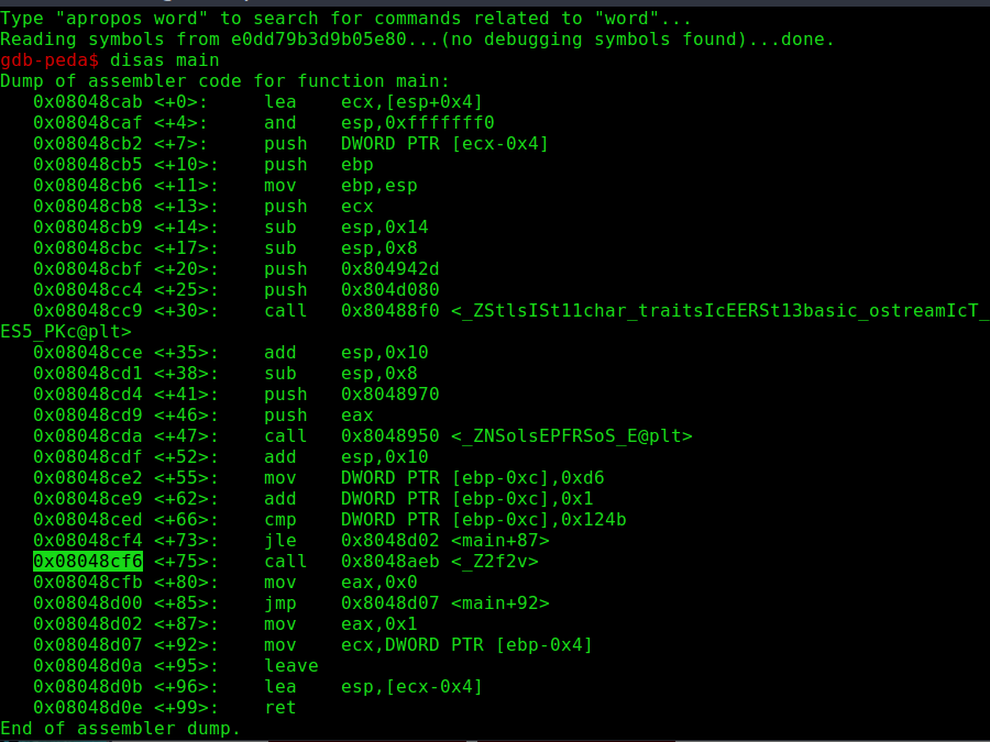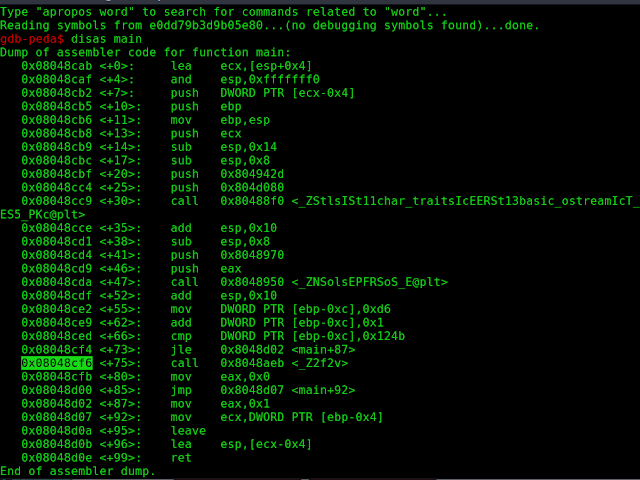 Setting the EIP to the address for _Z2f2v, we continue the program and it spits out a ton of stuff.