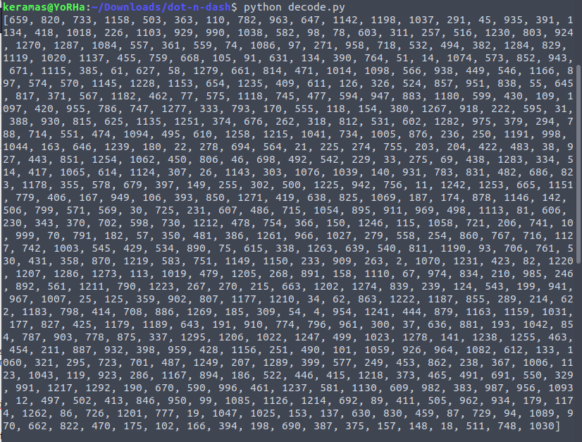 This was a fun little programming challenge from the recent Square CTF.We are given an html file and an encoded 'instructions.txt' file, which is a cipher of sorts containing nothing but dots and dashes.