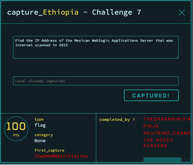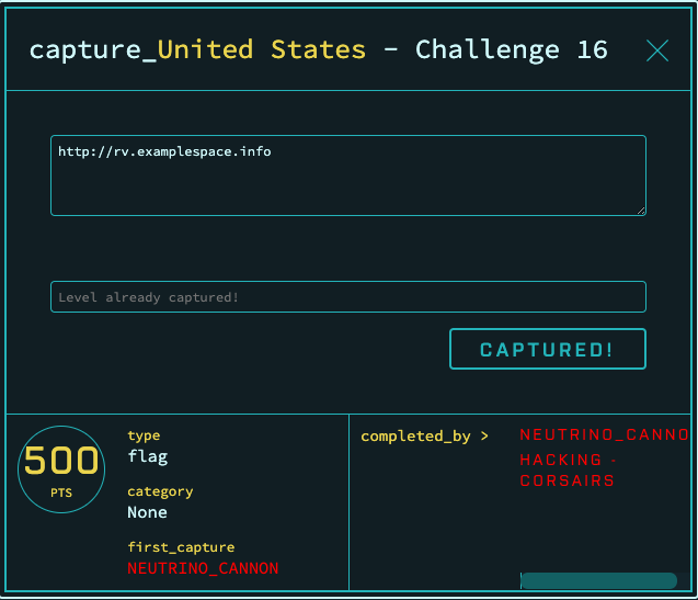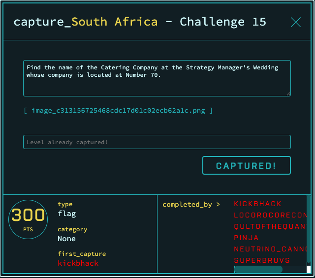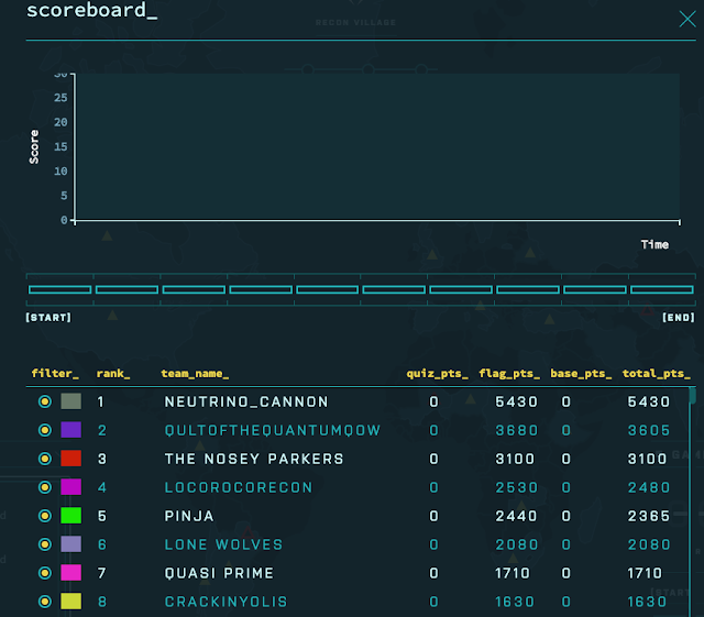 The organizers did a great job as always putting on this CTF and we had a lot of fun participating again this year. You could feel their passion and devotion to creating something exciting and challenging based on the boost in challenge difficulty and volume. There are only a couple of tweaks we would recommend for improving CTFs moving forward. First, a couple of the challenges were overly vague in the description, which is understandable to create a challenge, but for certain instances a slight bit more direction as to what we are searching for would have been appreciated (looking at you Spain!). However, this may be elucidated in the official writeup. And lastly, just a bit more communication from the organizers. There were a couple of hiccups at the start where challenges did not have their attachments and teams were hunting for something completely off, and a broadcast on the gameboard or Tweet would have been appreciated. Overall it was super fun and we are looking forward to seeing what's in store next year! Thank you again!