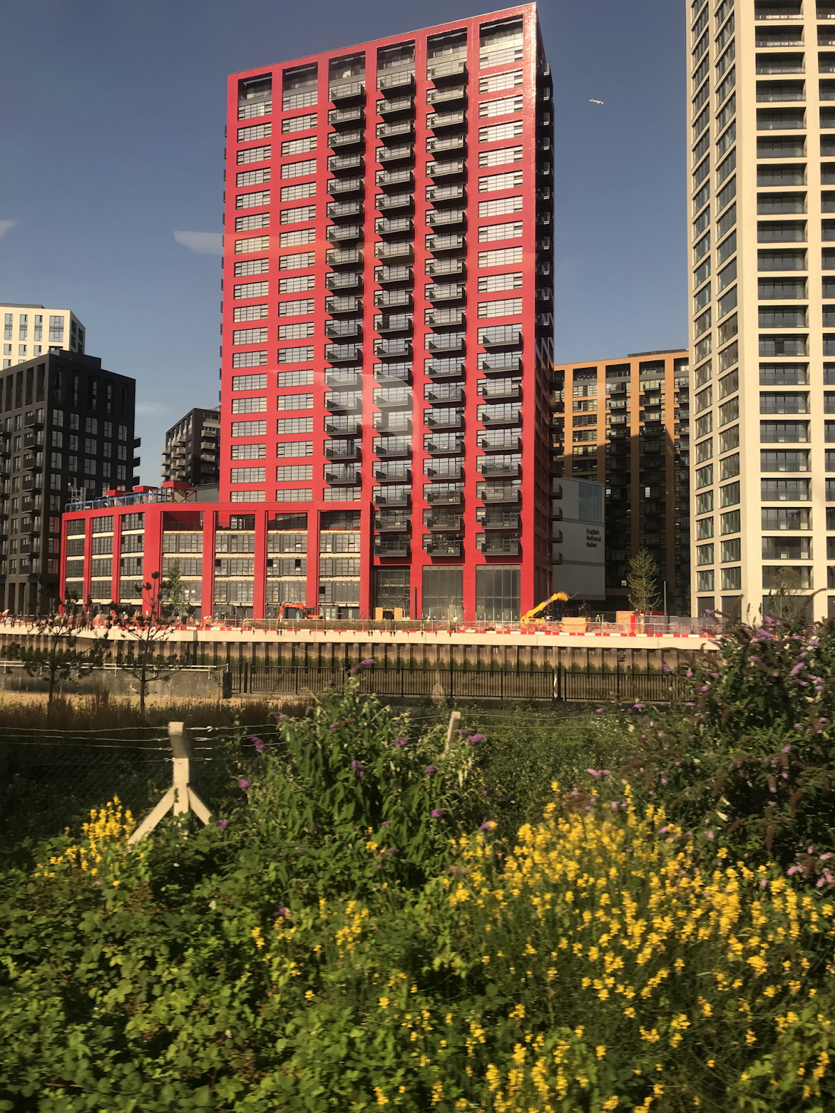 The above map shows that the nearest train station is "Canning Town" which is the flag.