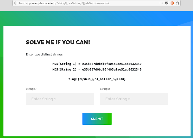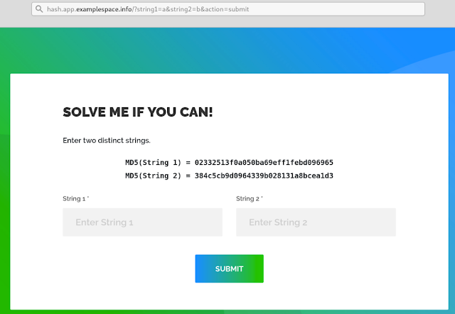 Based on the challenge text and the website, spidey-sense was tingling that we either needed to send hash collision strings or there would be a type juggling vulnerability.