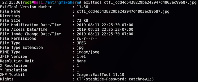 Pretty basic steganography challenge. Exiftool reveals a steghide password: