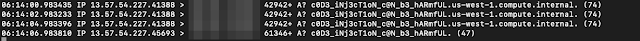 Looking at the fragment of the key in the challenge text, we realized that this was an AWS-related challenge based on the "AKIA" prologue. There are two parts required to access and query AWS: the access ID (this is the key that is missing characters) and the private key (which they graciously gave to us). Since we have the private key and the access ID is only missing two characters, we wrote a python script in conjunction with a bash script to test all possible combinations which will perform a simple query. Based on the output we could determine which characters completed the key.
