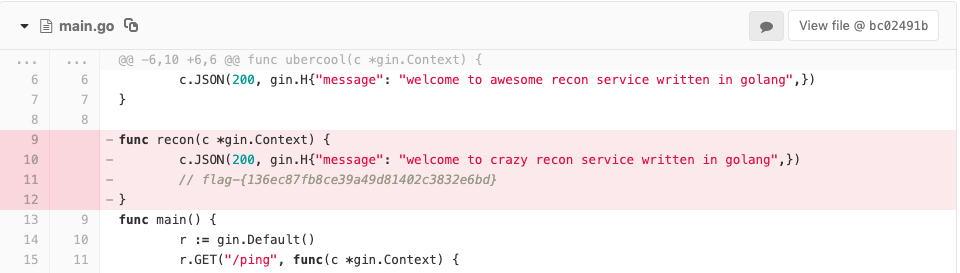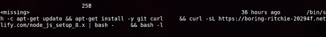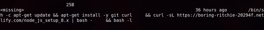 Exploring the history, there was a curl command being executed to retrieve a node_js-related file. Curling this file, we see mention of a git repo in the source code.