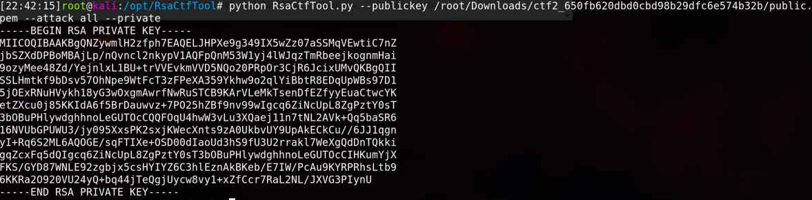 We are given a zip that contains a public.pem and a secrets.zip file which is encrypted. Using the well-known RsaCtfTool (https://github.com/Ganapati/RsaCtfTool) we were able to retrieve the private key and then decrypt the zip file with 'openssl rsautl'.